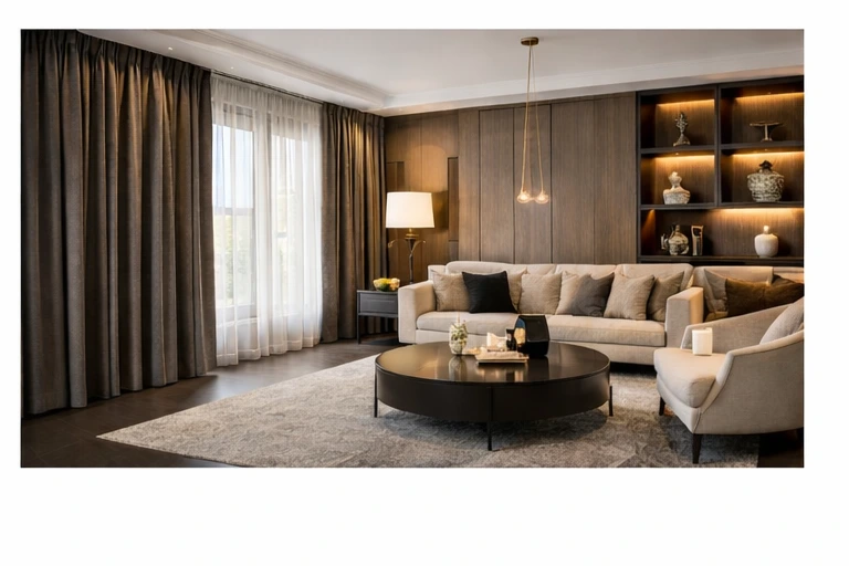 - combinatie van functionele en decoratieve interieurtextielen